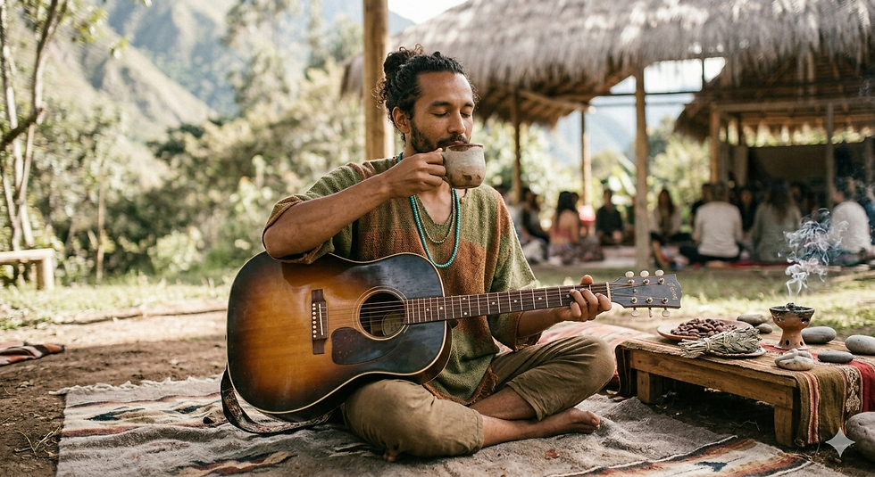 I started to play my guitar and found a melody within the chords. Images began to appear and words started to flow; a song was being sung through me as I became a hollow bone for the spirit of cacao to move through.